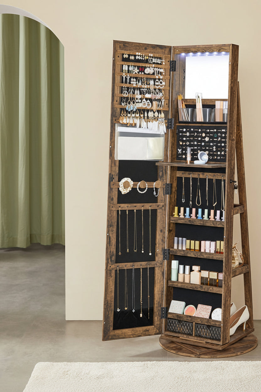 Abre la puerta y deja que ocurra la magia. 6 luces LED se encienden automáticamente, iluminando tus joyas para que elijas la combinación correcta incluso a oscuras, sin tener que prender la luz de la pieza y despertar a nadie.